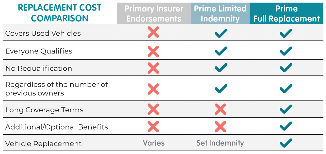 Some of the enhanced benefits provided are Total Loss Deductible Reimbursement, Partial Loss OEM Benefit, Vehicle Value Appreciation Benefit, Partial Loss Deductible Reimbursement, Key FOB Reimbursement, Extended Rental Vehicle Reimbursement, Diminished Vehicle Value Benefit and more.